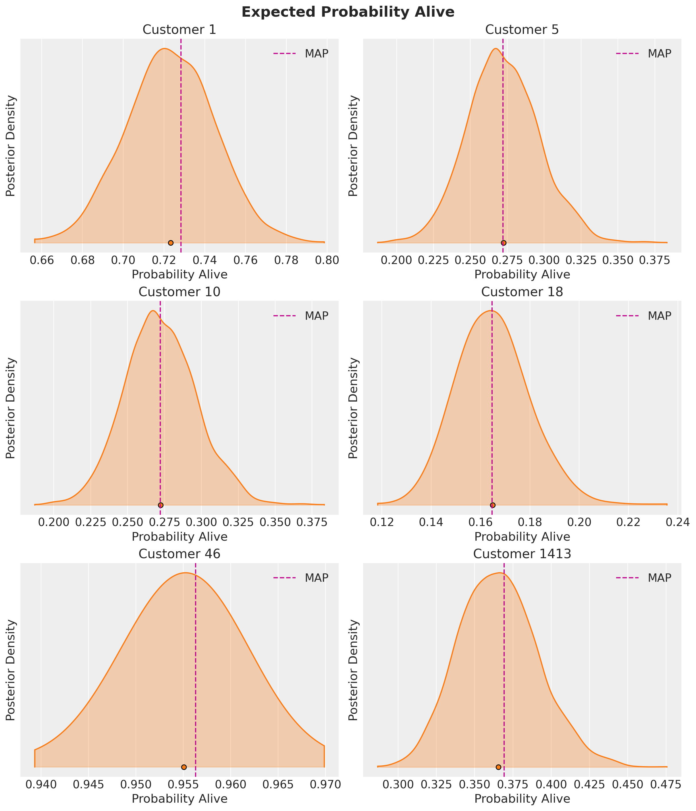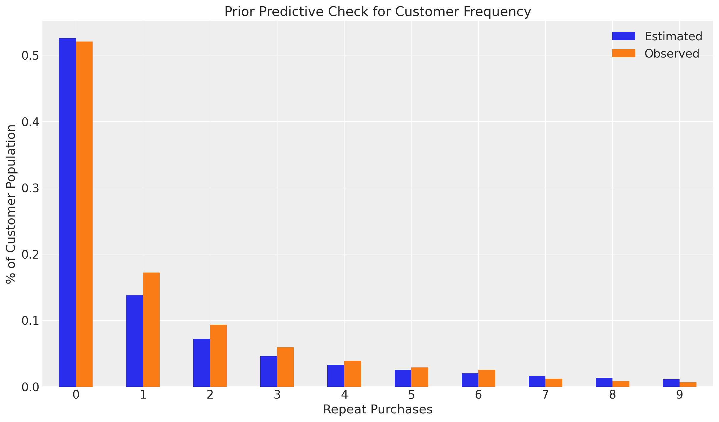 In this notebook we will use Bayesian inference to fit a Pareto/NBD model in PyMC-Marketing, and compare results with the frequentist lifetimes library (no longer maintained). We will also demonstrate the predictive functionality of this model, along with an example for time-invariant covariates.
