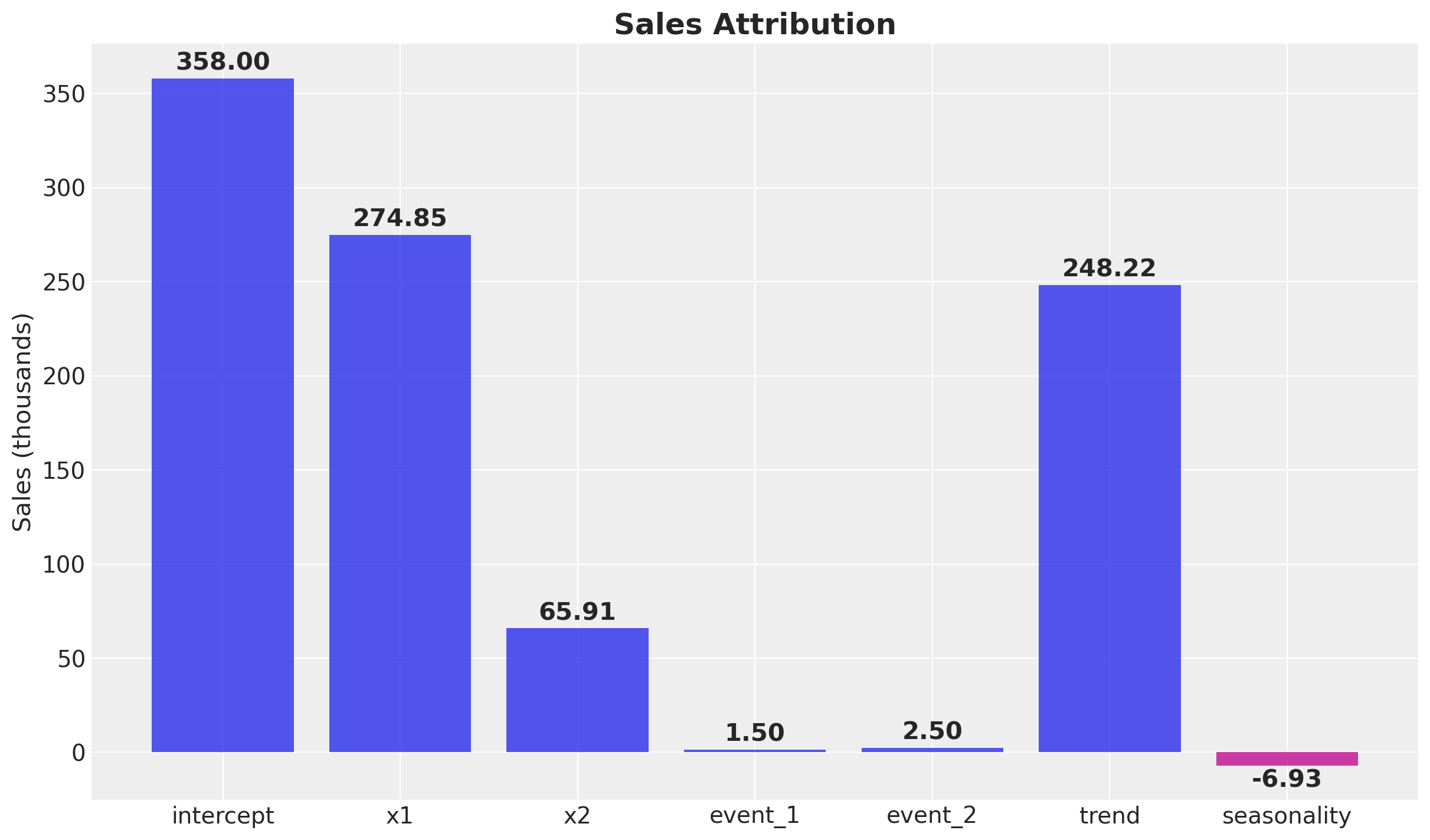 Budget Optimization: Allocate your marketing budget based on the parameters recovered by the model, finding the spend distribution to maximize the amount of contribution given a limited budget. See Budget Allocation with PyMC-Marketing.